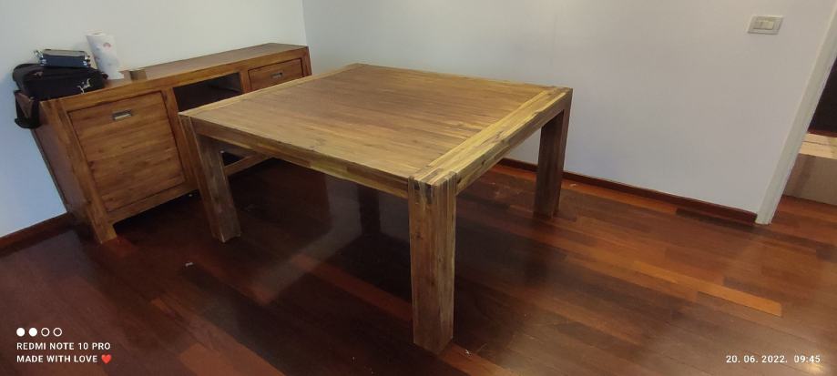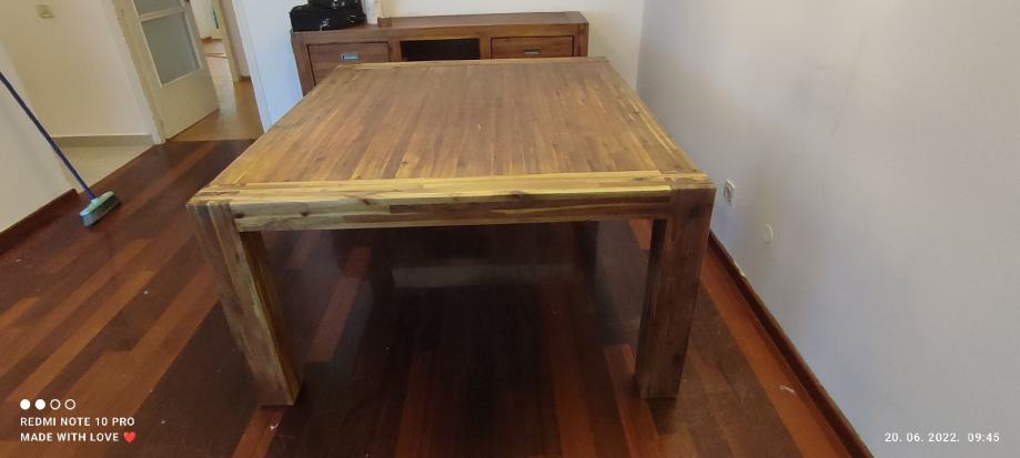 Prodajem blagavaonski stol, dimenzije 130x140cm, masivan, cca 70kg, drvo bagrem. Cijena 50€, plaćen 8000kn, zbog selidbe nam ne stane u novi prostor.