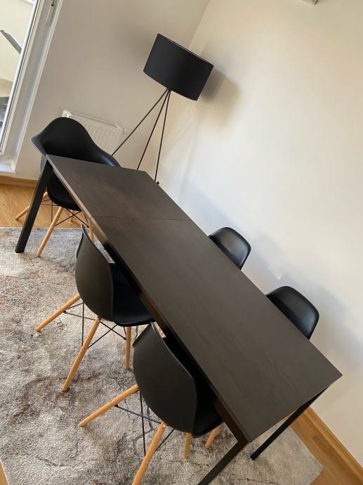 Prodajem blagavaonski stol na razvlačenje za 4 odnosno 6 osoba. Stol je korišten godinu dana. Širok je 75 cm a dugačak 2 metra kada se razvuče. Crne metalne noge i crno smeđe drvo.