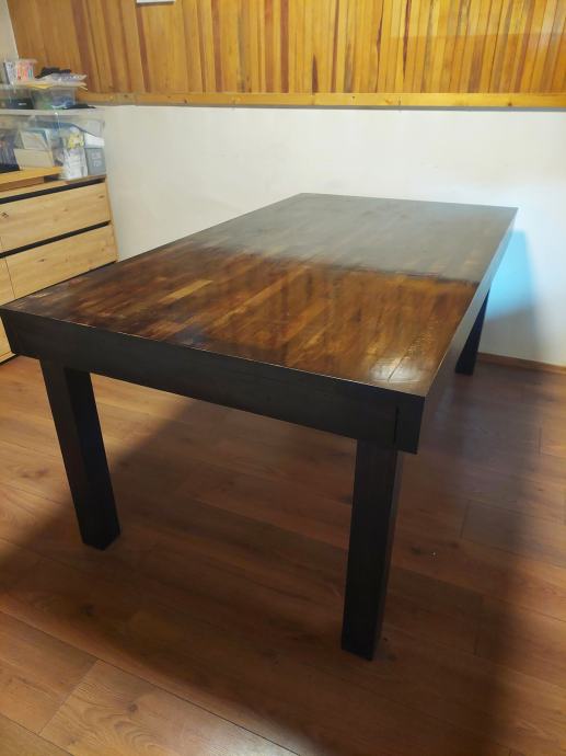 Masivni ručno rađeni hrastov stol dimenzija 179cm x 100,5 cm, visine 76,5 cm.