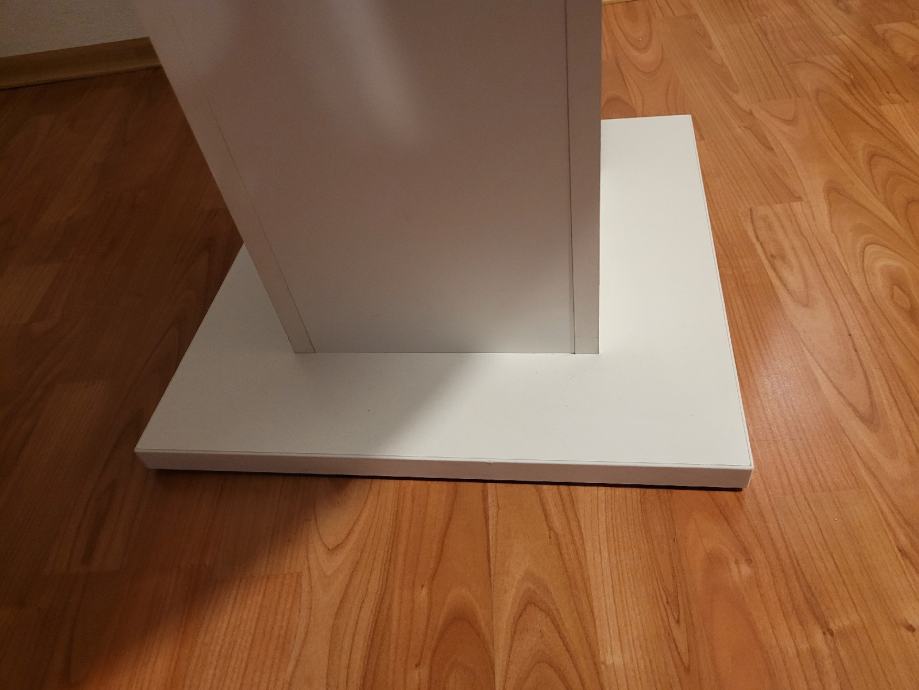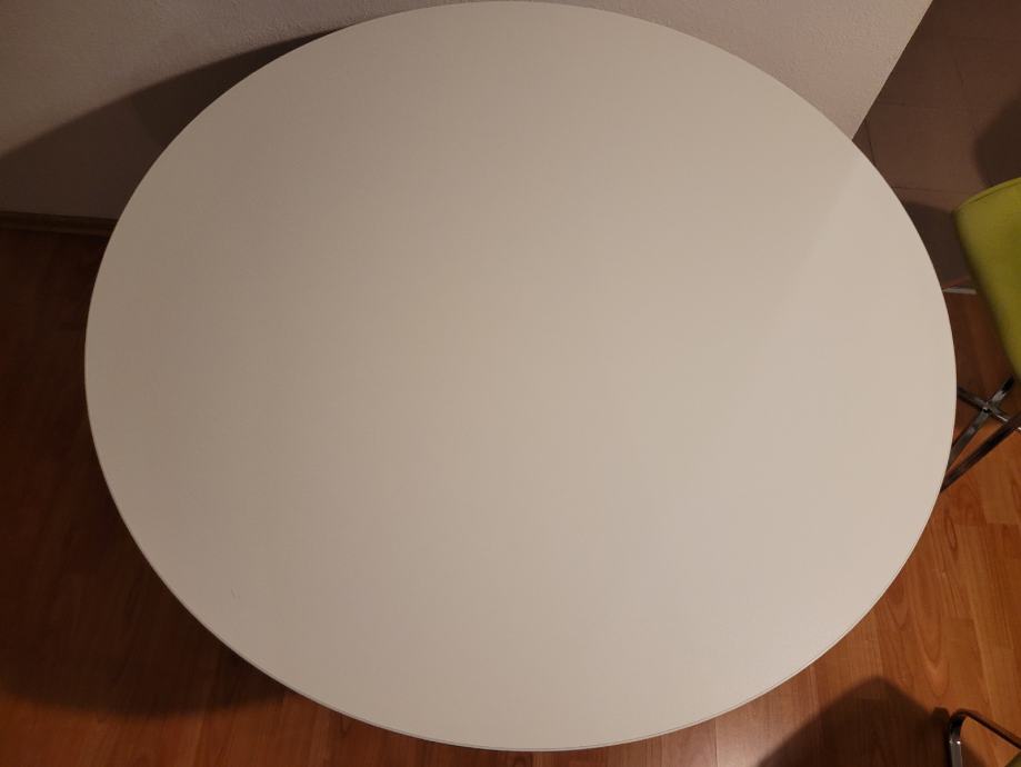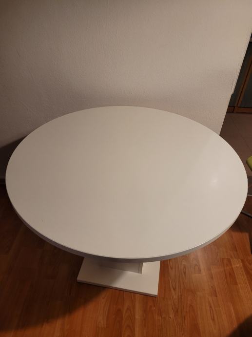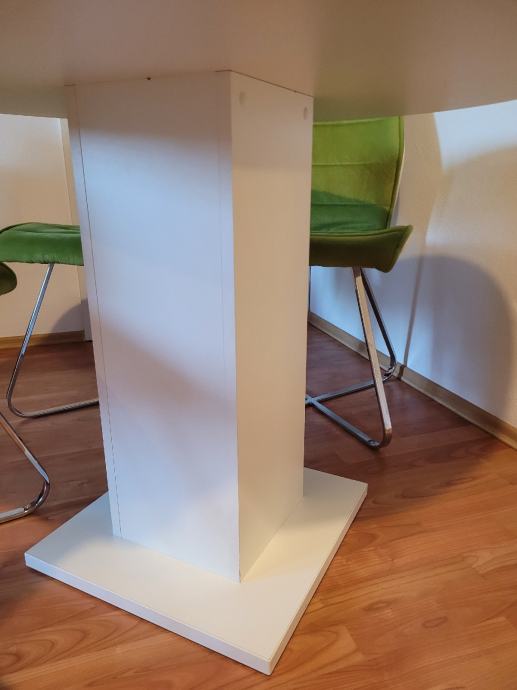 Prodajem okrugli stol od iverice, oplemenjen bijelom melaminskom folijom, na čvrstoj nozi u obliku kocke, kupljen u Primi prije 6 godina, u jako dobrom stanju (2 male ogrebotine na površini, kao što je prikazano na fotografiji). Mjere stola 100x100x75 cm (šxdxv). Cijena 65 €. Prijevoz u vlastitom aranžmanu.