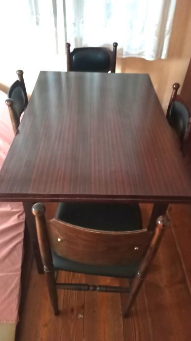 Prodajem blagavaonski stol na razvlačenje i 4 stolice tapecirane sa eco kožom. Ploča stola presvučena furnirnirom koji je otporan na toplinu i ogrebotine.