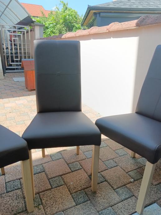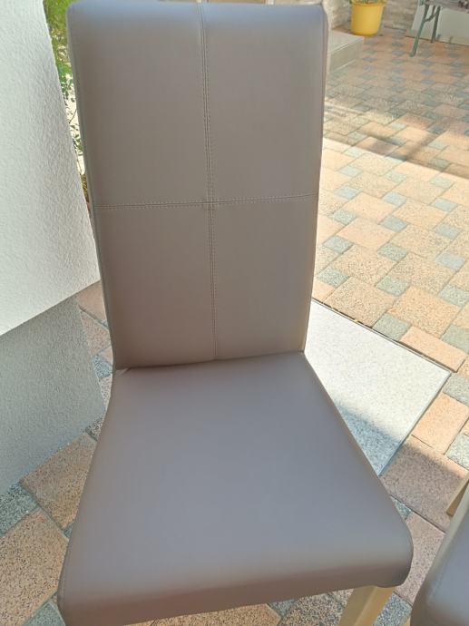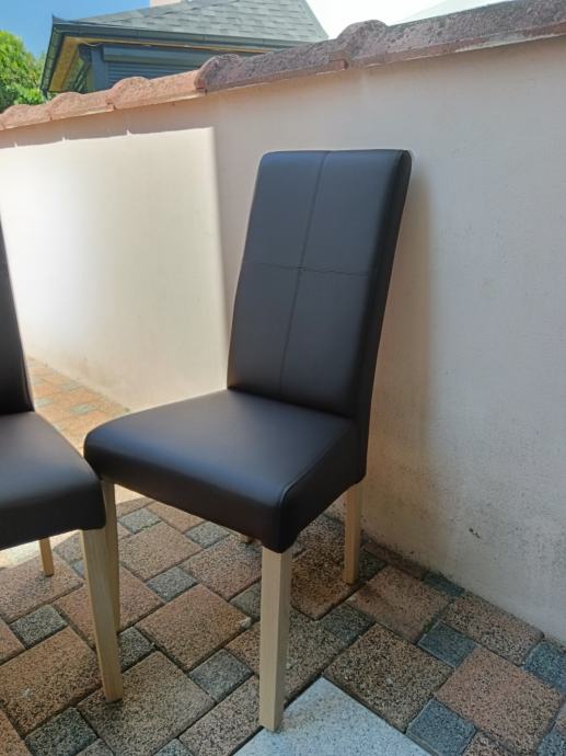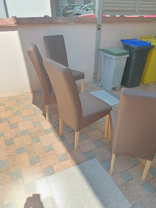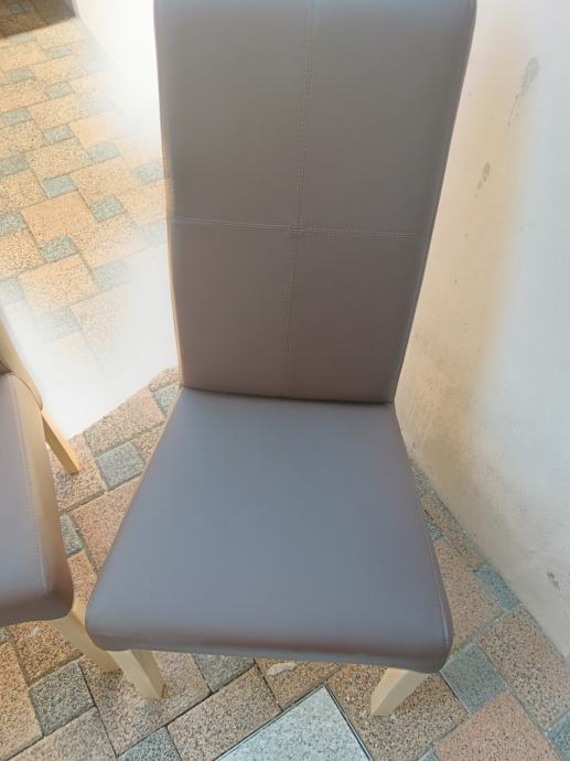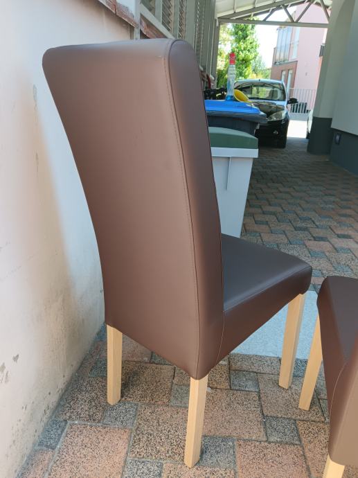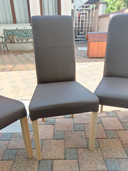 Prodaju se 4 blagavaonske stolice, potpuno novo, nikad korišteno. Smeđa boja, noge izbjeljeni hrast.
