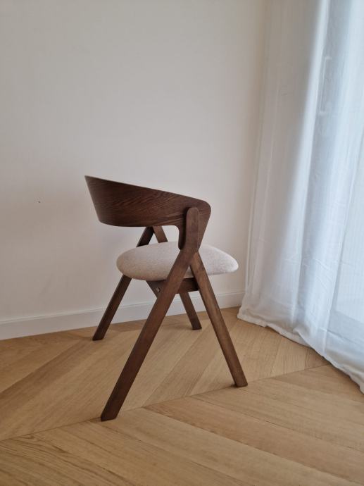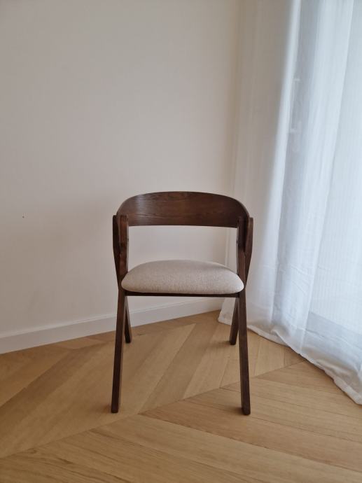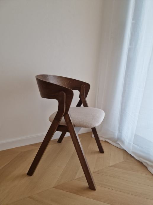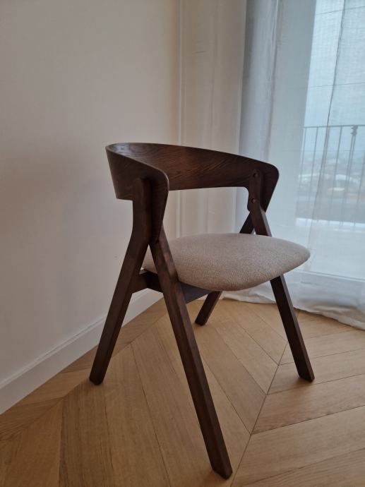 Prodajem 4 nova Godia stolca kupljena u KaveHome (Španjolska) . Stolci su originalno koštali 165 EUR svaki , ja prodajem 130 eur/komad , odnosno za 500 eura ako uzmete sva 4. Originalni link: https://kavehome.com/hr/en/p/godia-chair-in-ash-veneer-with-a-wenge-finish-and-beige-chenille#productDetails