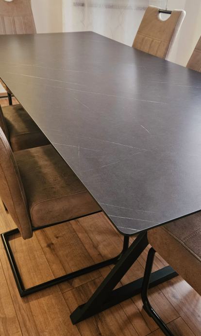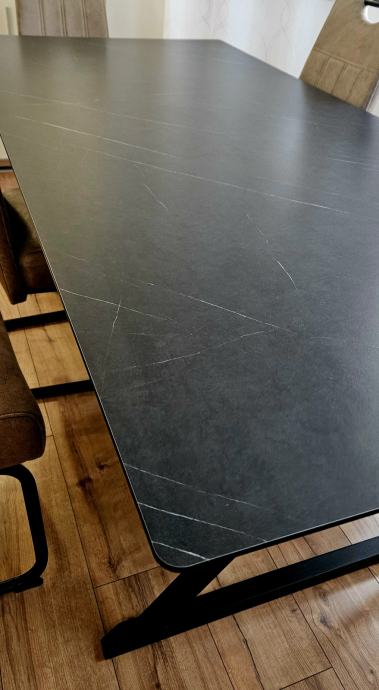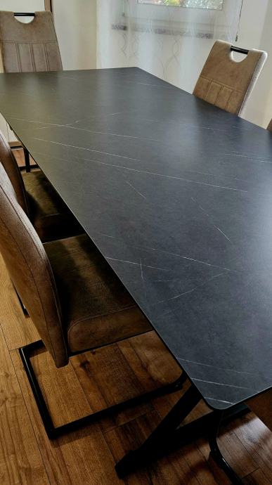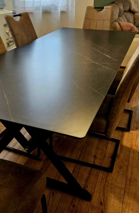 Blagovaonski stol dimenzija 200 x 90 cm izrađen iz Max copmact ploče - izuzetno čvrstog, otpornog materijala koji podnosi čak i vanjske utjecaje. Može biti izložen sunci i kiši bez straha od propadanja jer se radi o takvoj vrsti materijala.