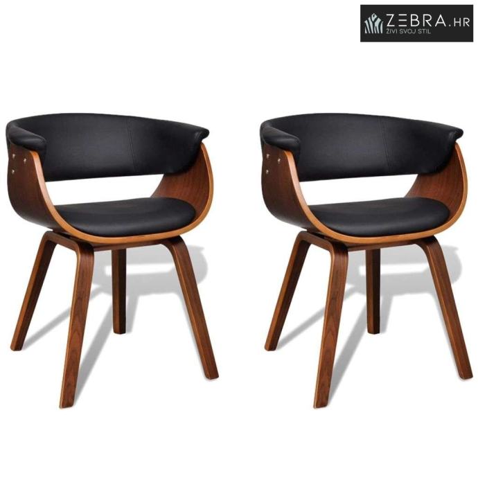 Blagovaonske stolice 2 kom od zaobljenog drva i umjetne kože - black