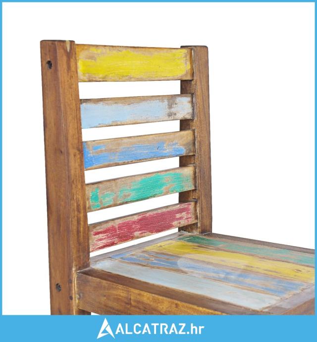 Stolice su ručno izrađene od masivnog obnovljenog drva, mješavine obnovljenog drva koja uključuje tikovinu, drvo manga, borovinu, bukvu itd. Ta se drva recikliraju iz starih zgrada, poput tvornica, šupa i čamaca. Zbog toga je to fantastična, ekološki prihvatljiva opcija u izradi namještaja. Budući da je svaki komad ručno izrađen, boje se razlikuju i pokazuju brojne plave, zelene, crvene i žute nijanse. To čak znači da je svaki komad jedinstven!