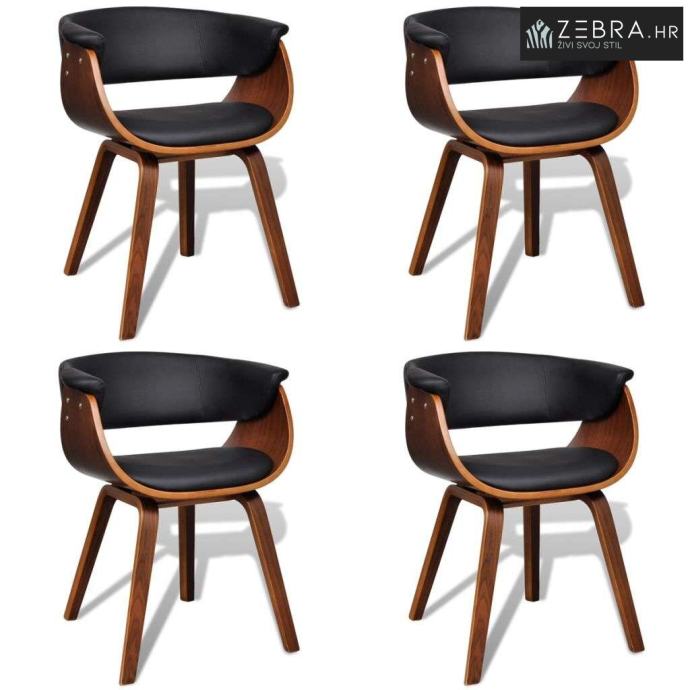 Blagovaonske stolice 4 kom od zaobljenog drva i umjetne kože - black