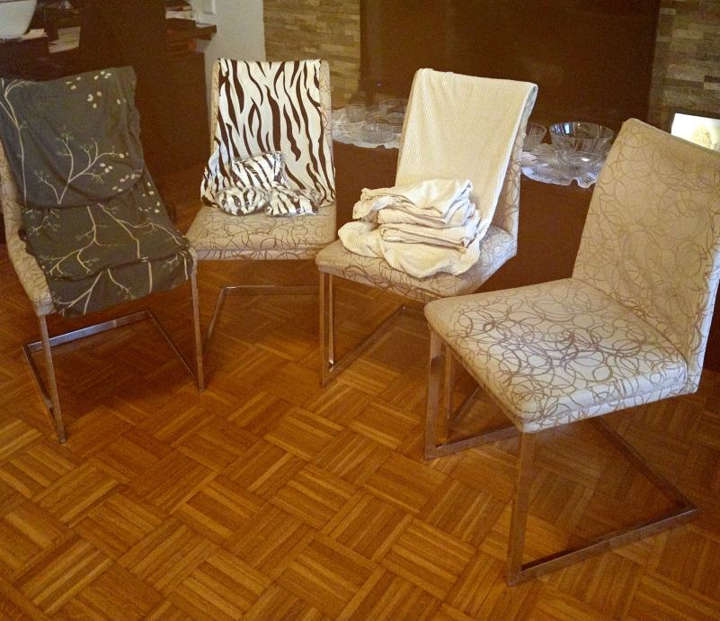 Tapecirani stolci nosivosti do 120 kg, kromirane noge, 3 puta po 4 dodatne navlake