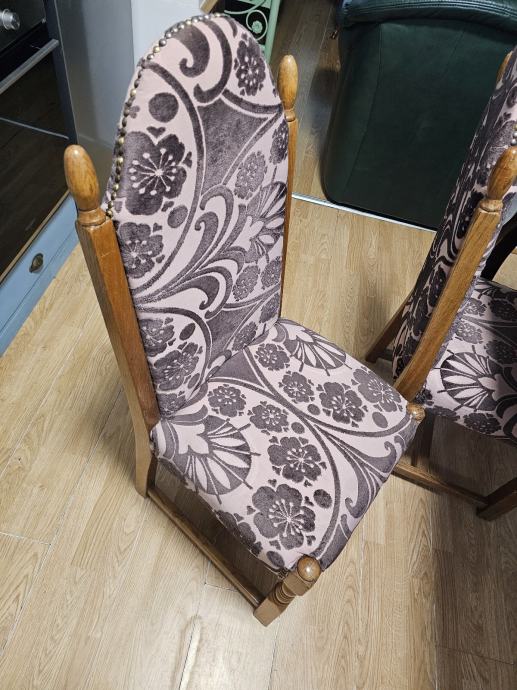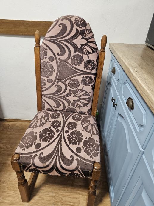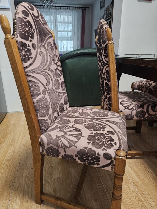 Kvalitetne i udobne hrastove stolice,nedavno tapecirane s udobnim naslonom visine od 70 cm, 6 kom.