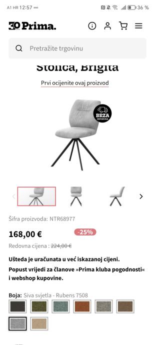 Prodajem 2 nove jako kvalitetne stolice (stoje u sobi nekorištene). Mi smo kupili 8 takvih komada, no zbog stola koji imamo dvije su nam viška pa je to razlog prodaje. Stavljam sliku koliko koštaju u trgovini Prima gdje su i kupljene. Cijene za obje stolice je 220 eura.