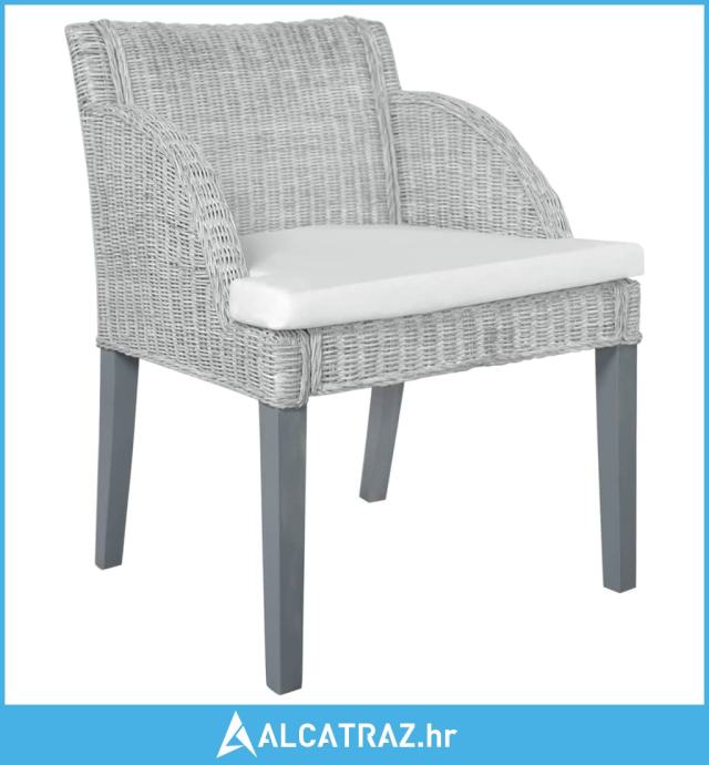 Blagovaonske stolice s jastucima 2 kom sive od prirodnog ratana - NOVO