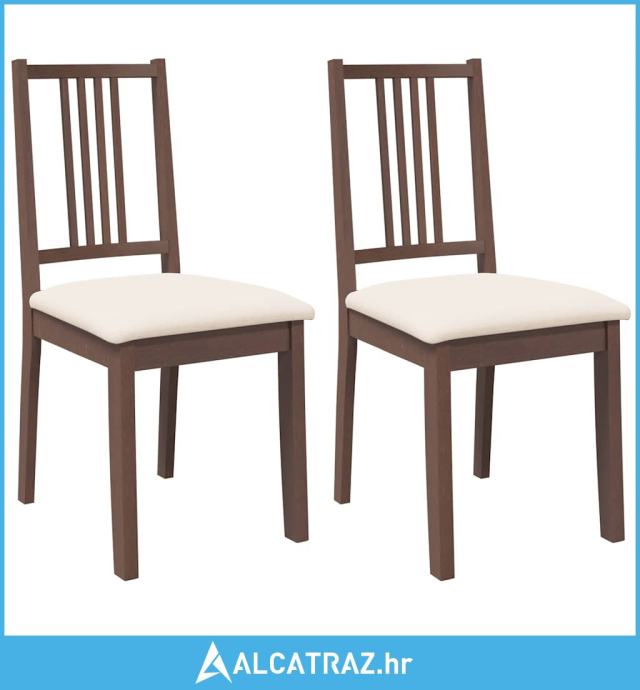 Blagovaonske stolice s jastucima 2 kom smeđe pune drvene gume - NOVO