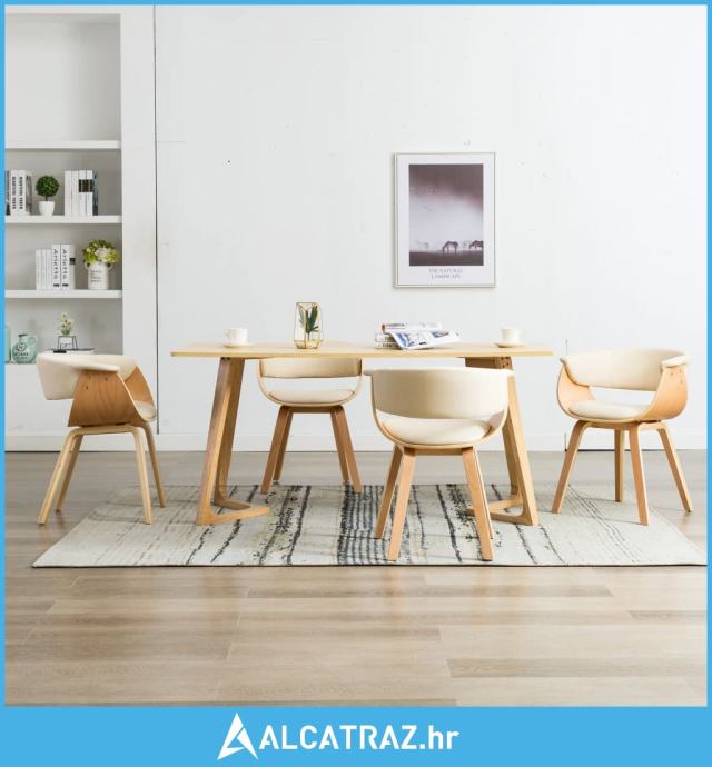 Blagovaonske stolice krem 4 kom savijeno drvo i umjetna koža - NOVO