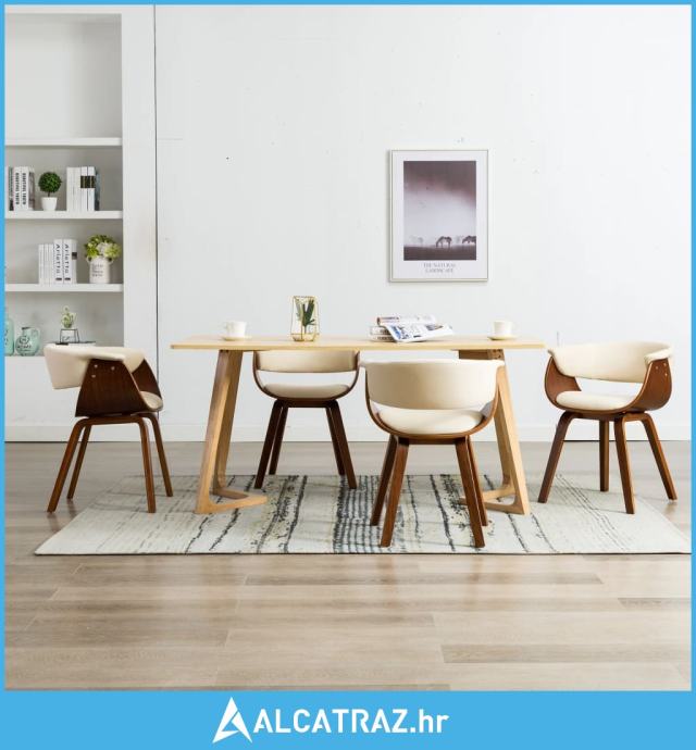 Blagovaonske stolice krem 4 kom savijeno drvo i umjetna koža - NOVO