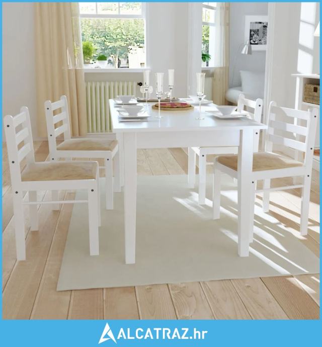 Blagovaonske stolice od masivnog drva kaučukovca 4 kom bijele - NOVO