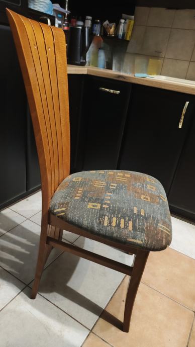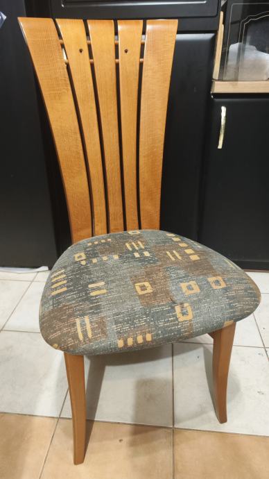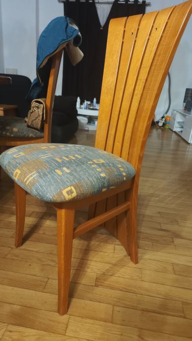 Prodajem 8 komada blagovaonskih stolica marke Murales, drvo bukva, premaz trešnja. Stolice super kvalitetne i udobne, čvrste, bez fizičkih oštećenja. Potrebno je na njima postaviti ručkice koje smo skinuli zbog lakše pohrane.