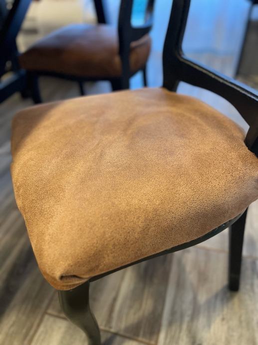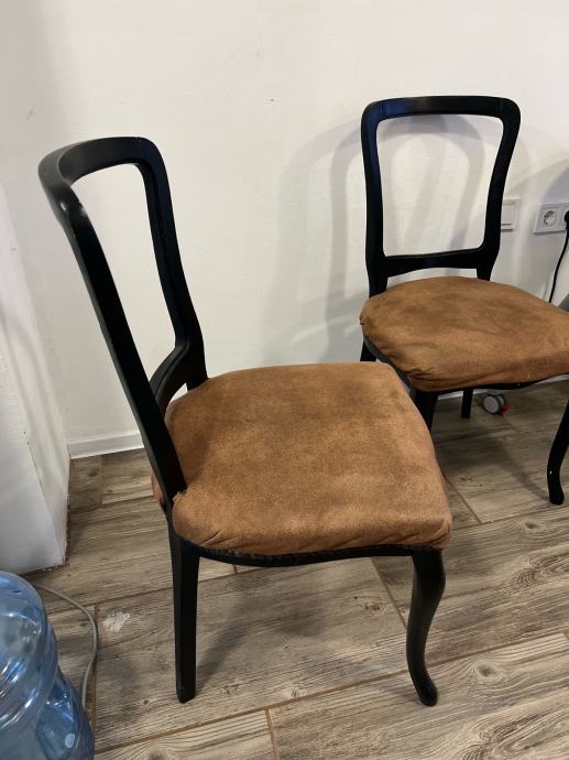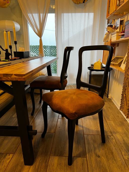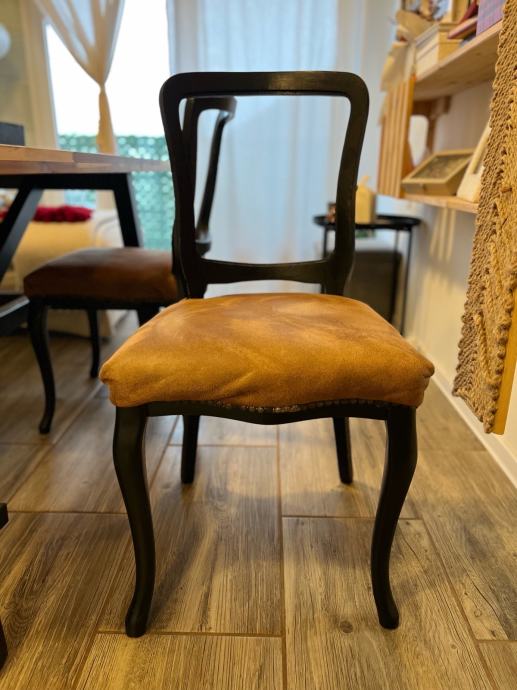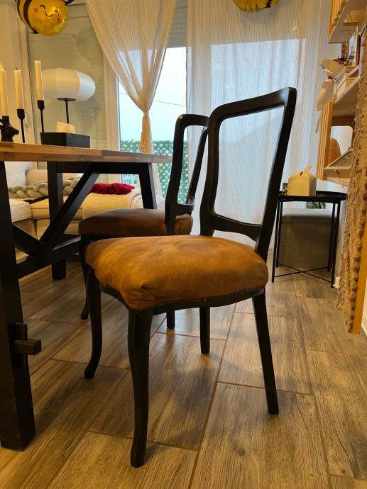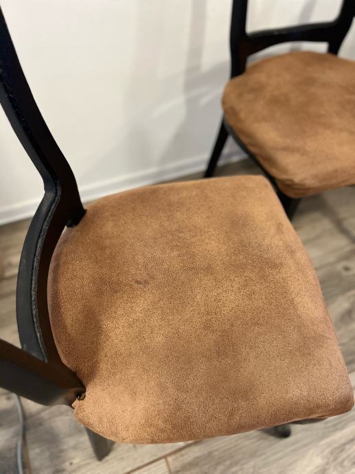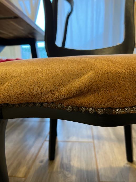 4 Restaurirane blagovaonske stolice sa no scratch tkaninom za kućne ljubimce izgleda smeđe kože. Stanje vidljivo na slikama. 20€ po komadu, sve skupa prodajem za 50€