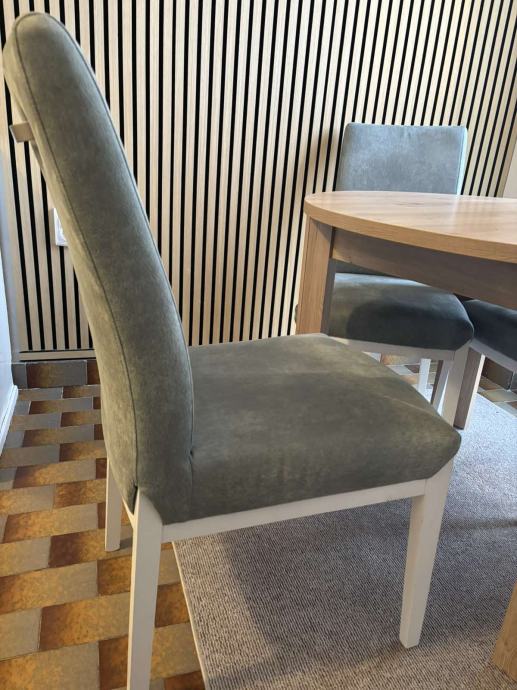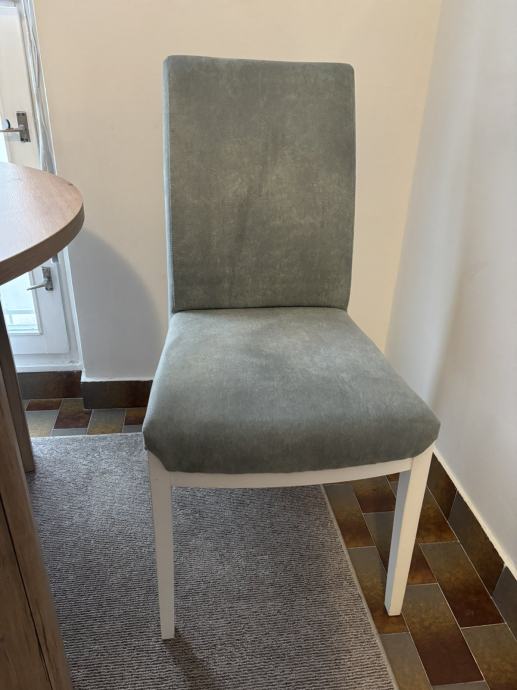 Prodajem 4 blagovaonske stolice, kupljene u Primi prije godinu dana. Plaćene 112 eura svaka. Očuvane, bez oštećenja, stabilne i čvrste. Cijena 60 eura komad.