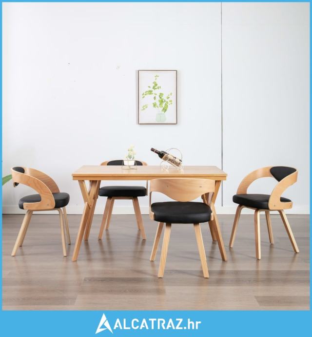 Blagovaonske stolice od savijenog drva i umjetne kože 4 kom crne - NOV