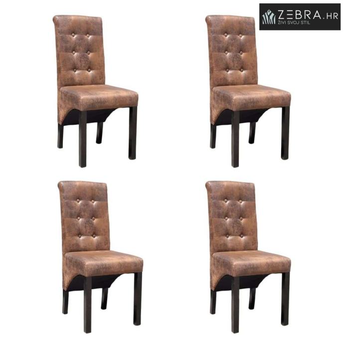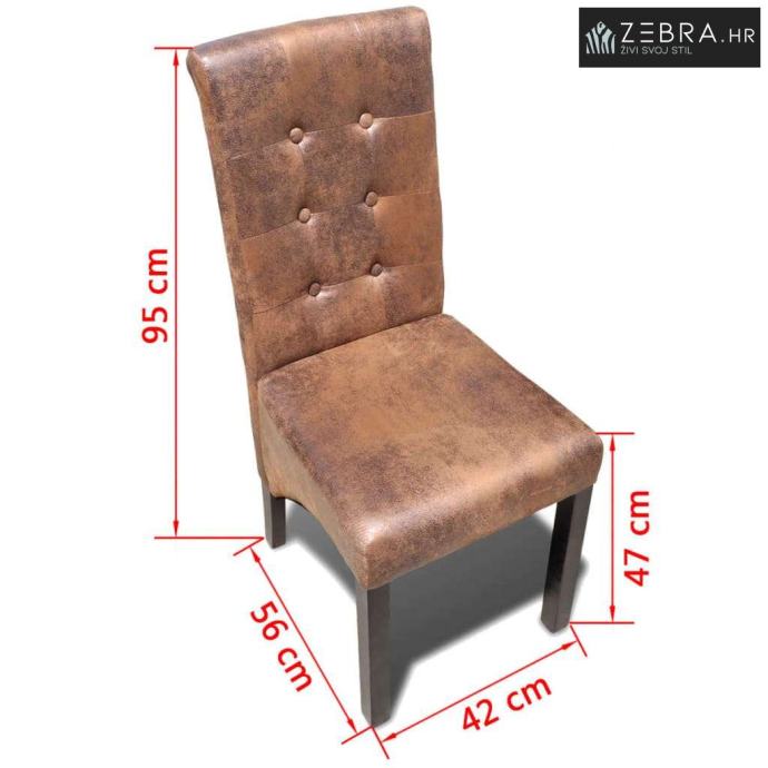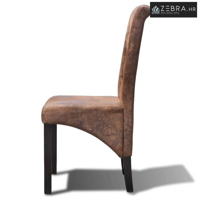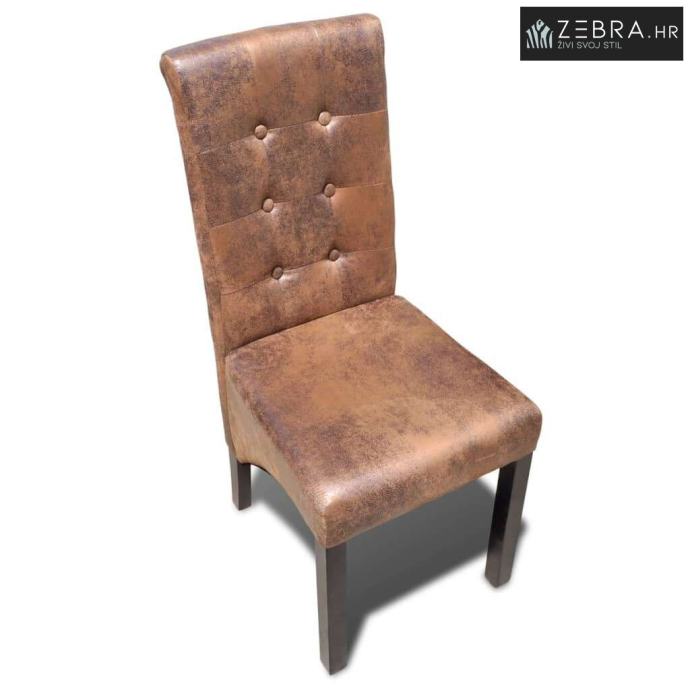 Ova udobna blagovaonska stolica ima visokokvalitetnu drvenu konstrukciju. Izrađena od 100% poliestera, naša blagovaonska stolica izgledom podsjeća na antilop kožu. Zahvaljujući debelo podstavljenom sjedalu i naslonu za leđa, pruža vam optimalnu udobnost prilikom sjedenja. Uz to, gumbi na naslonu pridonose njezinom prekrasnom dizajnu.