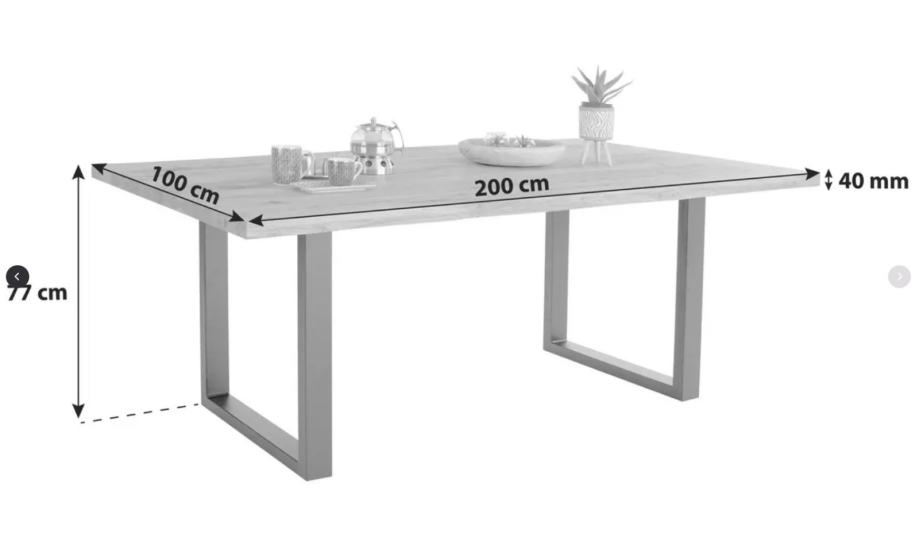 Blagovaonski drveni stol od hrasta s crnim nogama (200x100x77 cm)