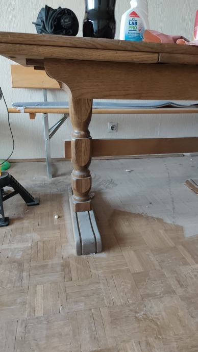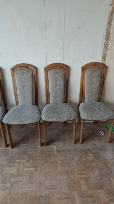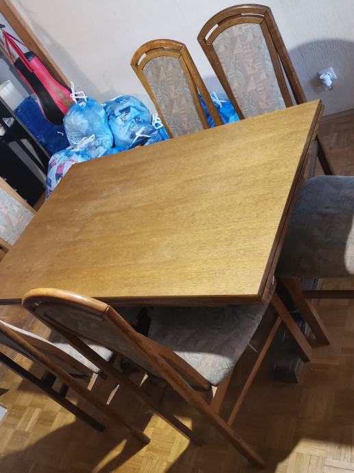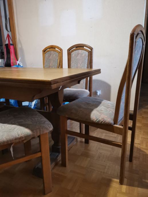 Star, ali očuvan namještaj. Puno i teško drvo, pravi hrast. Ima 7 stolaca, ne 6 kako je na slikama.