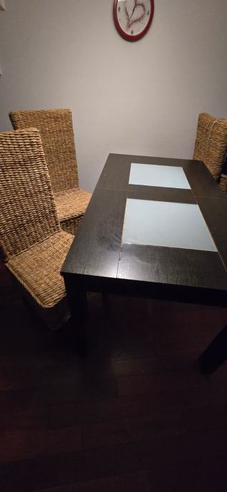 Prodajem balgovaonski set od 4 stolice od abaka (bananin list) sa stolom na razvlačenje.