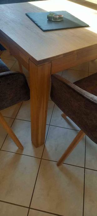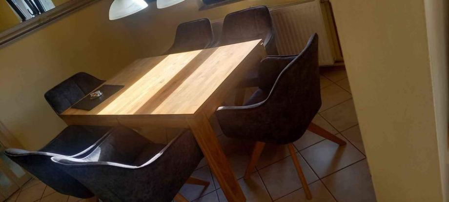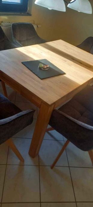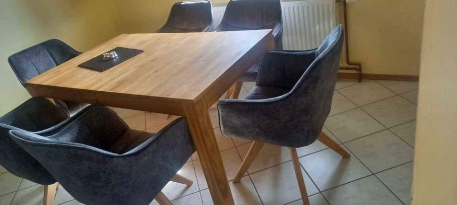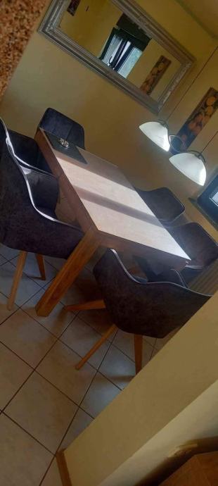 Stolice kao zaokretne fotelje drvenog materijala te baršuna. Set se prodaje u kompletu ili zasebno stol za 300 EUR i stolice za 800 EUR. Za više informacija javiti se privatno.