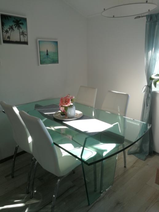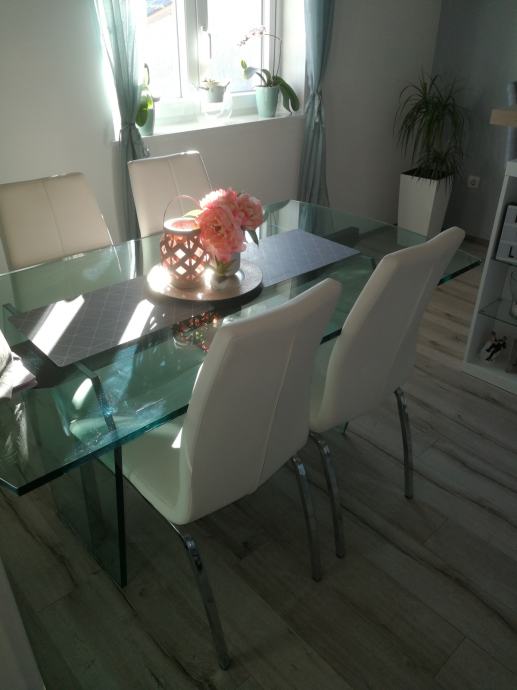 Prodajem moderan blagovaonski stol od punog stakla, prikladan i kao radni stol, dimenzije 160x87, debljina stakla 2 cm. Cijena nije fiksna.
