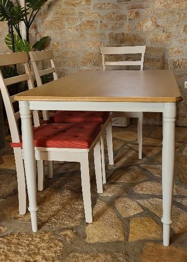 Prodajem blagovaonski stol za 6 osoba. Dimenzije 130 cm * 80 cm, visine 74 cm. Hrastov furnir sa bijelim metalnim nogama. Vrlo dobro očuvana. Ikea Danderyd: