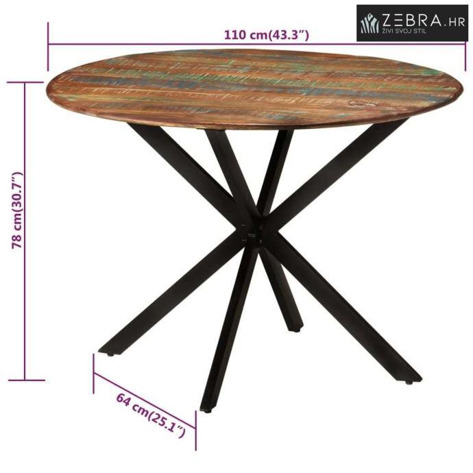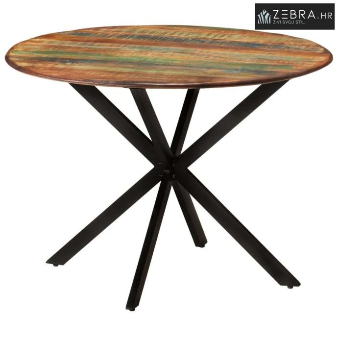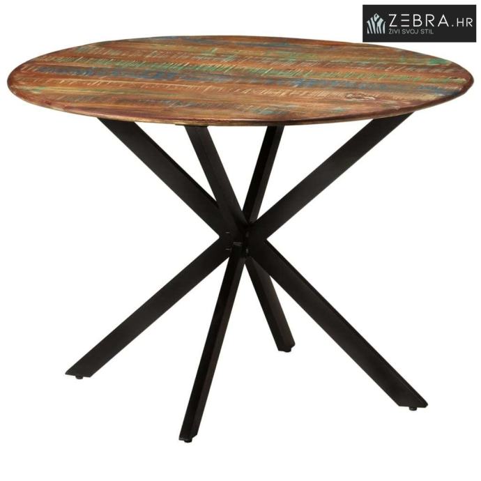 Blagovaonski stol Ø 110x78 cm masivno obnovljeno drvo i čelik - Ø 110