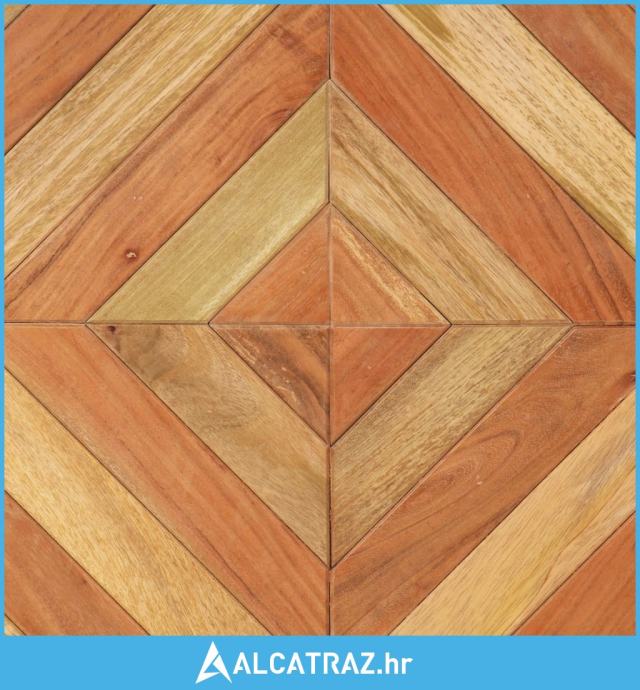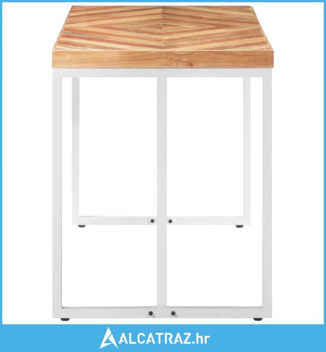 Ručno izrađen od masivnog drva bagrema i manga, ovaj kuhinjski stol izuzetno je stabilan i izdržljiv. Noge od čelika obloženog bijelim prahom pružaju dodatnu stabilnost. Čvrsta stolna ploča ima ševron i mozaični dizajn, zbog čega je posebni ukras vašeg interijera. Također se može upotrebljavati za odlaganje pića ili grickalica.