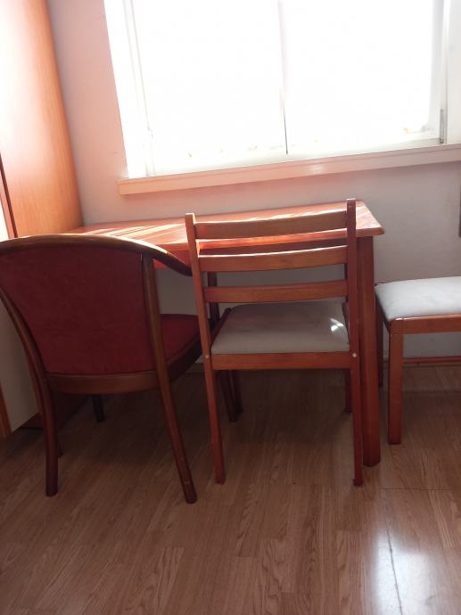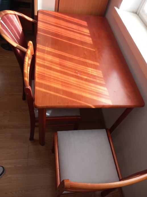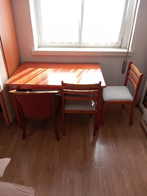 Prodajem jak blagovaonski stol dimenzija 120 x 80 cm. Uz stol idu i tri stolice - na slici.
