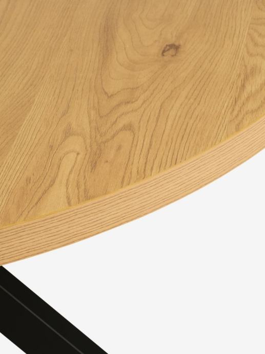 Okrugli blagovaonski stol s pločom od ukrasnog furnira s izgledom hrasta i crnim nogama od čelika. Ø120xV75 cm