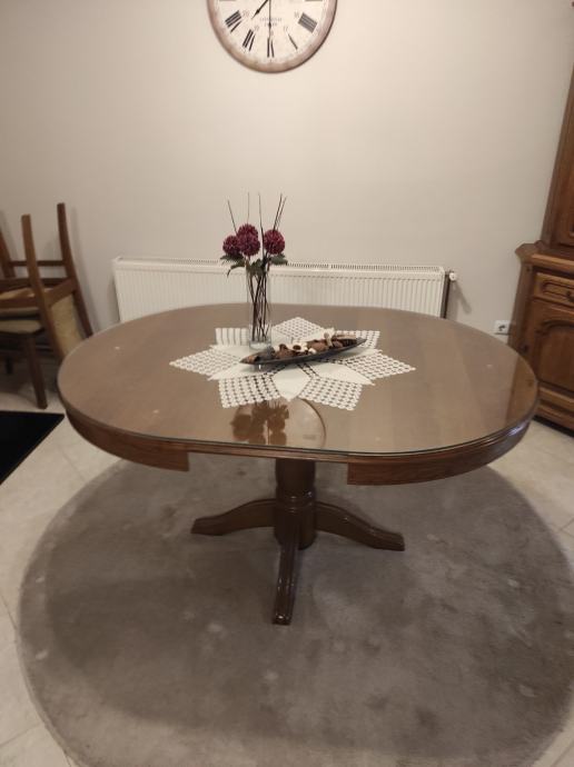 Prodajem okrugli drveni blagovaonski stol sa staklom – odlično stanje