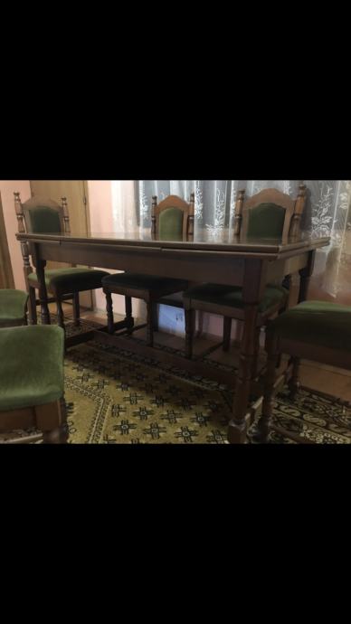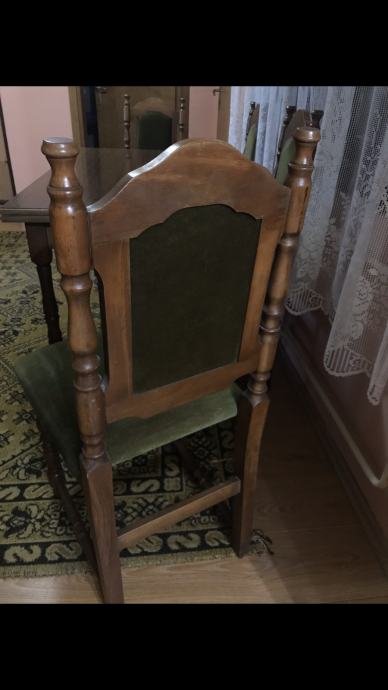 Prodaje se kvalitetan blagovaonski set od pune hrastovine – stol na razvlačenje i 6 stolaca s tapeciranim naslonom.