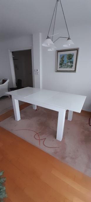 Blagovaonski stol na razvlačenje, bijeli sjaj, masivan.