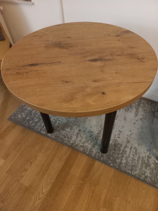 Rađen po narudžbi- Promjer ploče: 80 cm, visina 75. Drvo. Noge od lakiranog željeza. Jednom korišten. Ispravno skladišten. Pogodan za dnevnu sobu, blagovaonu, kuhinju, terase, balkone, vrt. Plaćanje gotovinom pri primopredaji.