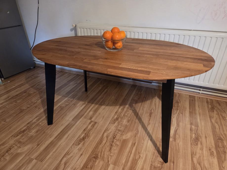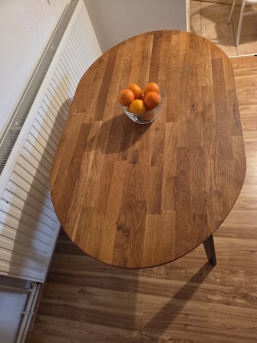 Prodajem dva blagovaonska stola, obli je dimenzija 150 cm x 90 cm, odličan za obitelji s djecom jer nema oštrih rubova. Stol je ručni rad, zaštićen voskom i uljem. cijena tog stola je 650 eura