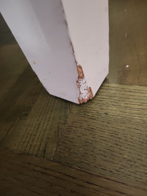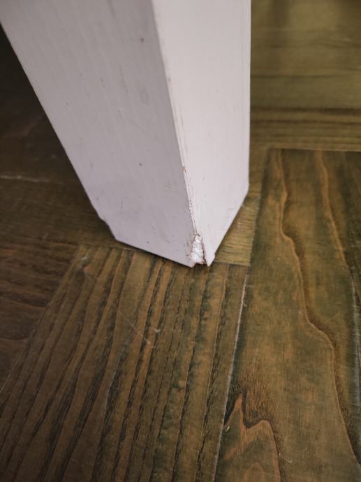 Stol je korišten, očuvan s malim tragovima korištenja na gornjoj strani, ali ima oštećenja na donjem dijelu noga.