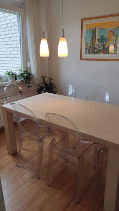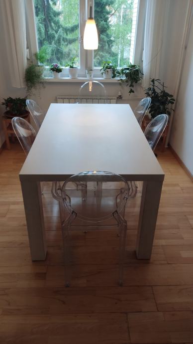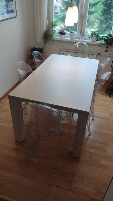 Zbog preseljenja prodajemo vrlo očuvani blagovaonski stol od iverala breze dimenzija 160 cm (dužina) / 90 cm (širina) / 75 cm (visina).