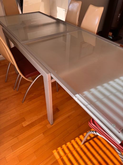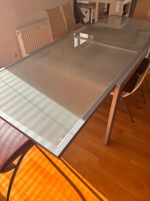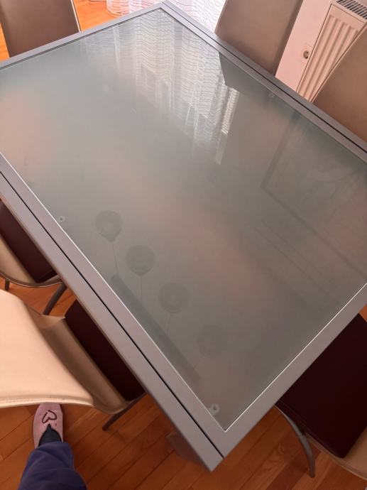 Prodajem stakleni blagovaonski stol na razvacenje. Dimenzije stola su 120(240)x90 cm. Ocuvan.