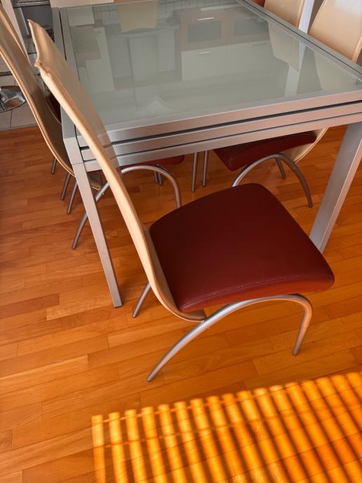 Cijena stola je 100€.Prodajem i stolice prava koža. 6 kom. Za 90€