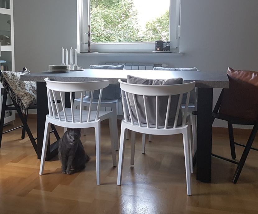 Prodajemo blagovaonski stol Jamal dimenzije 160x90 cm. Ploča je od MDF materijala, noge su od crno obojanog metala.