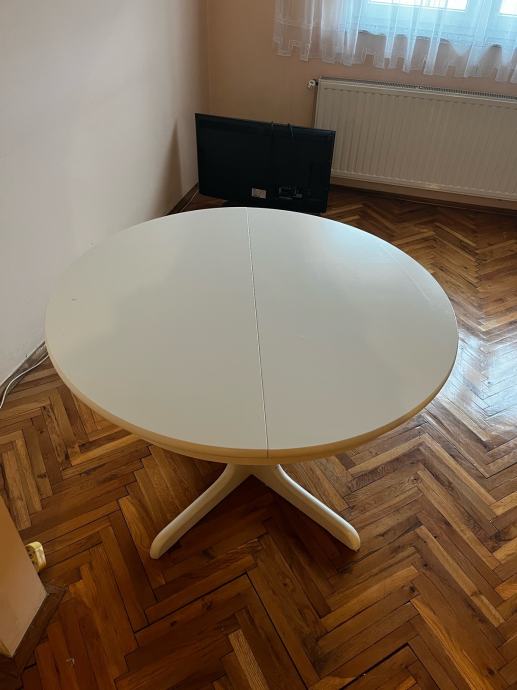 Blagovaoski stol na razvlacenje. Visina: 76 cm, promjer: 110 cm. Ispravan, jedino na nekim mjestima oguljena boja (vidi se na slici).