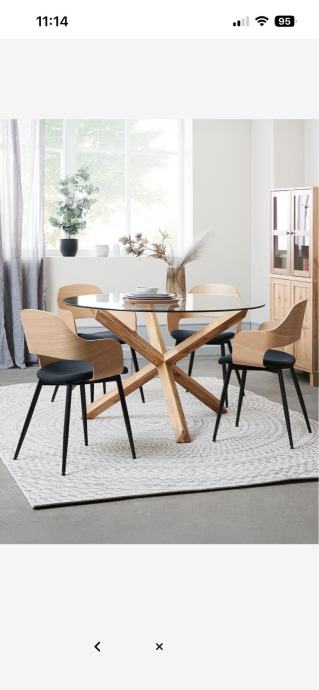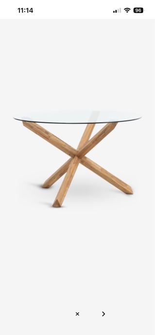 Blagovaonski stol, nov, neraspakiran, iz Yiska, prodaje se jer je višak, originalna cijena mu je 279 eura, prodajemo za 200, okrugli, promjer 119 cm, staklo, noge natur hrast.