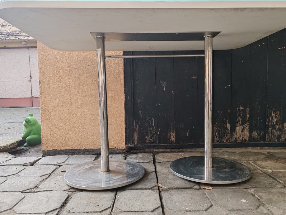 Drveni blagovaonski stol, gornja ploca staklena. Inox postolje.