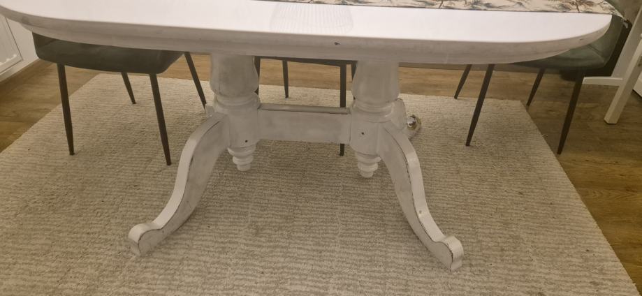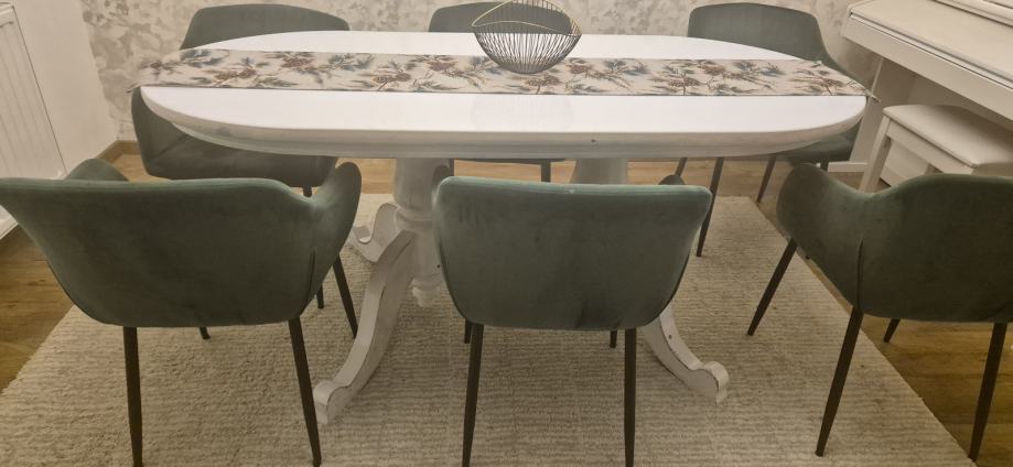 Prodajem stol od punog ličkog drveta, ovalni, dužina 180 cm, širina 85 cm, na gornjoj strani napravljena pokrivka od pleksija. Po želji prodajemo i stolice povoljno.