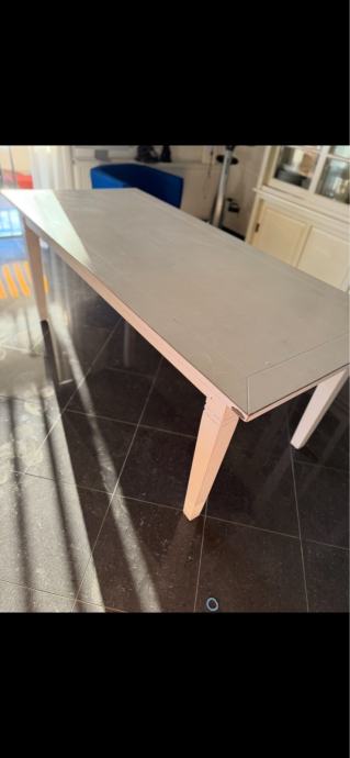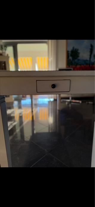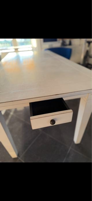 Prodajem blagovaonski stol u bijeloj boji s pravokutnom radnom površinom. Stol ima moderni dizajn s ladicama za pohranu, a bijela nijansa pristaje uz različite stilove uređenja prostora. Stol je prikladan za svakodnevno korištenje u blagovaonici ili kuhinji.