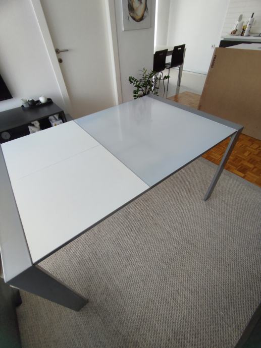 Prodajem rabljeni stakleni stol na razvlačenje, dimenzija 90x90 cm+ 50 cm razvučeni dio. Stol je dobro očuvan.